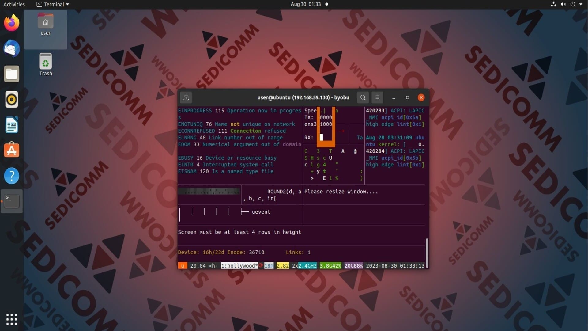 - Выведите на экран движущийся поезд с помощью sl