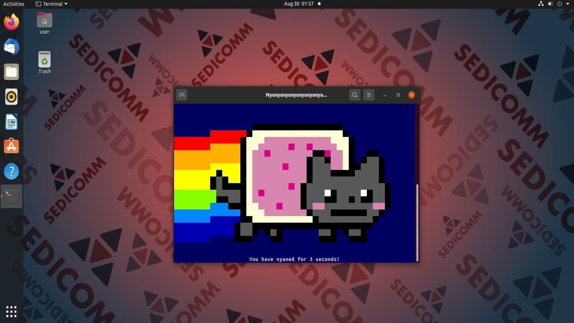- Отобразите на экране видеоролик Nyan Cat с помощью nyancat