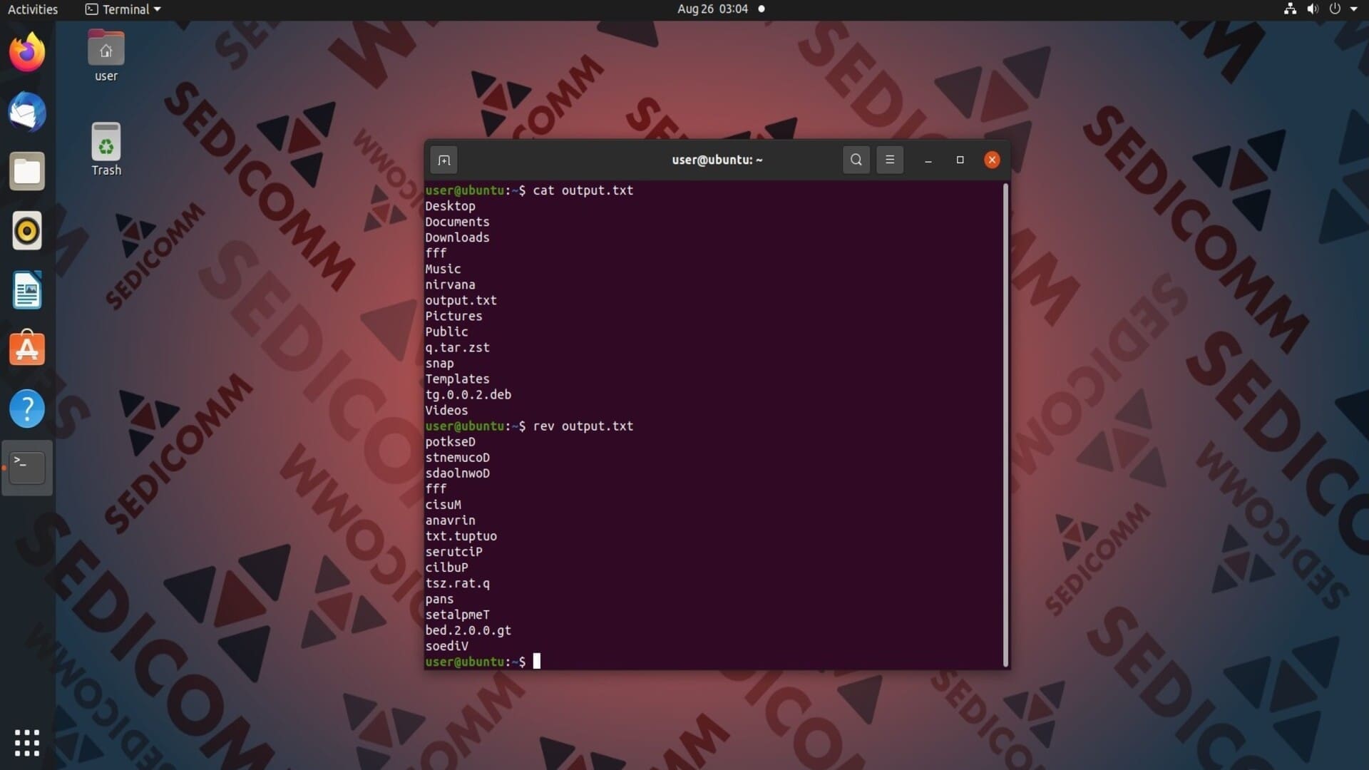- Измените порядок вывода символов в каждой строке текста с помощью rev