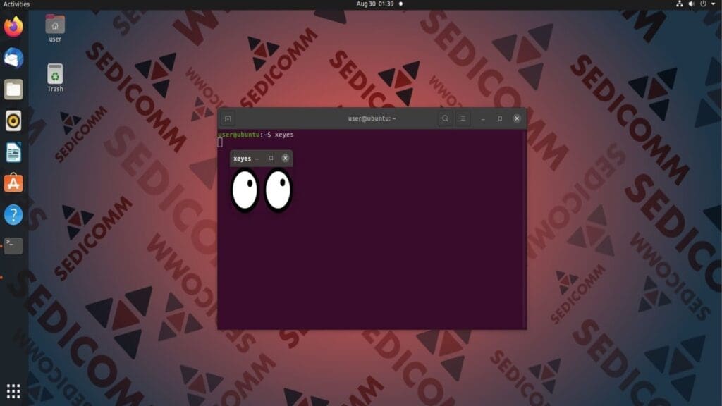 Команда xeyes отображает пару анимированных глаз, которые следят за перемещением курсора мыши по экрану. Хотя утилита не несет никакой пользы, она создает причудливое и игривое дополнение к графическому интерфейсу пользователя.