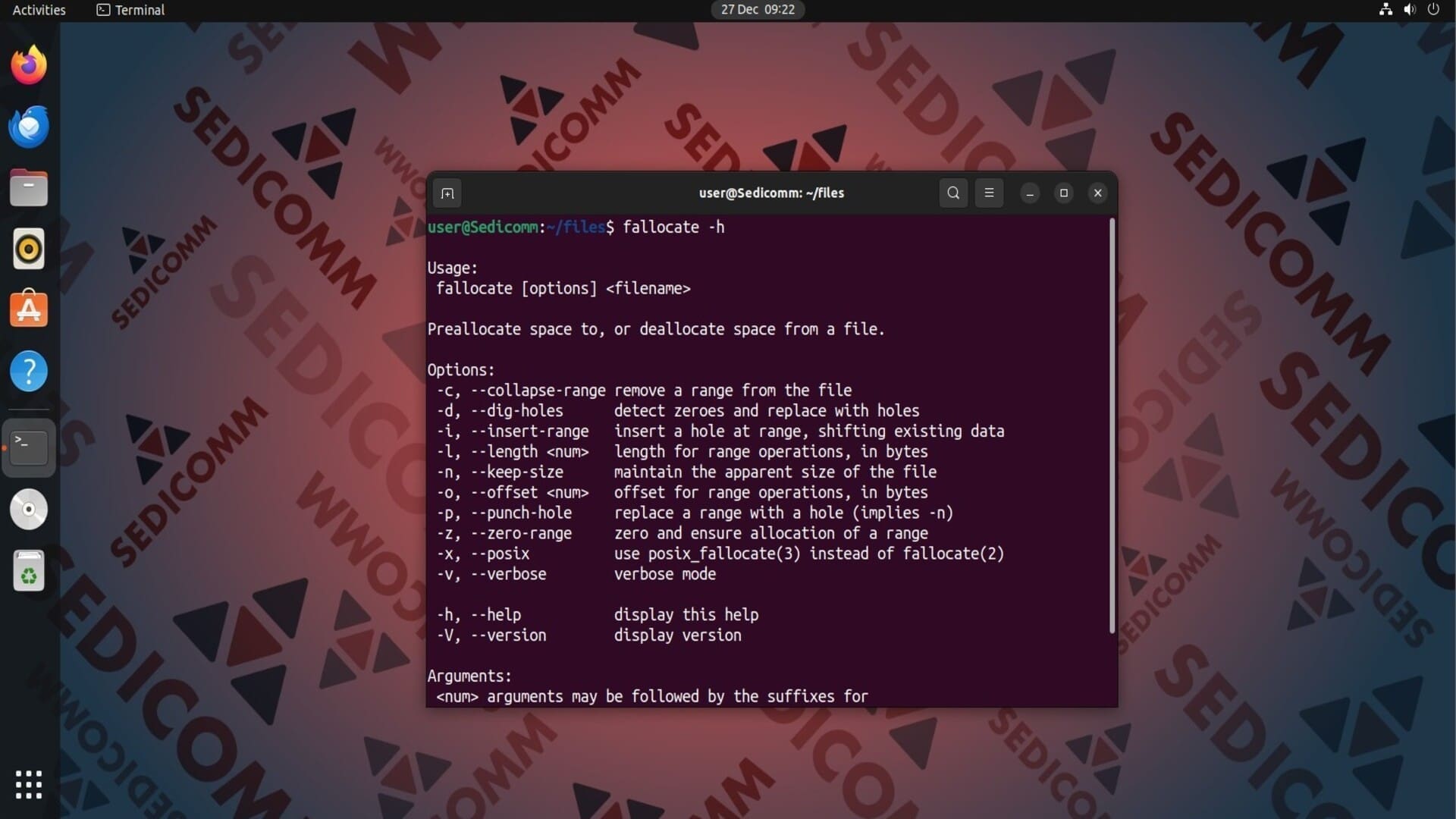 Чтобы вывести на экран все опции команды fallocate, выполните в терминале: