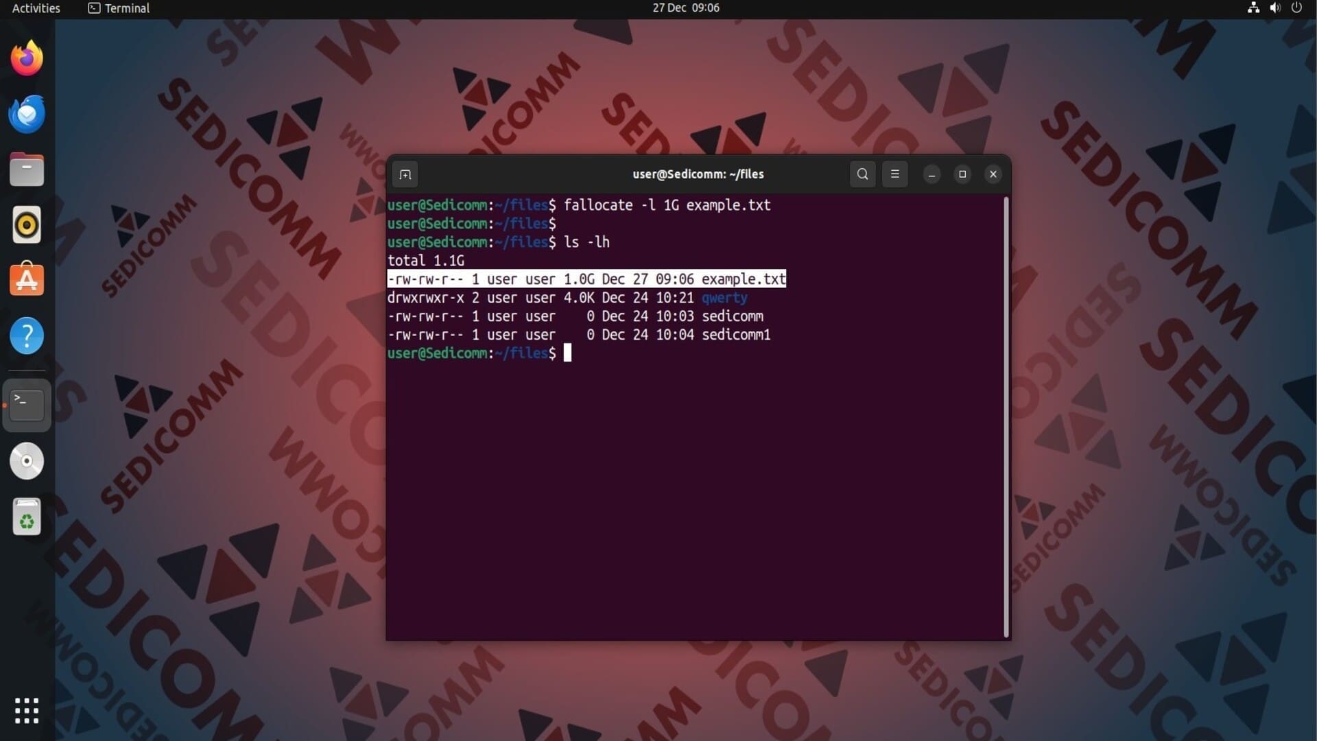 На скриншоте выше видно, что в каталоге появился файл example.txt, и его размер равен 1 ГБ.