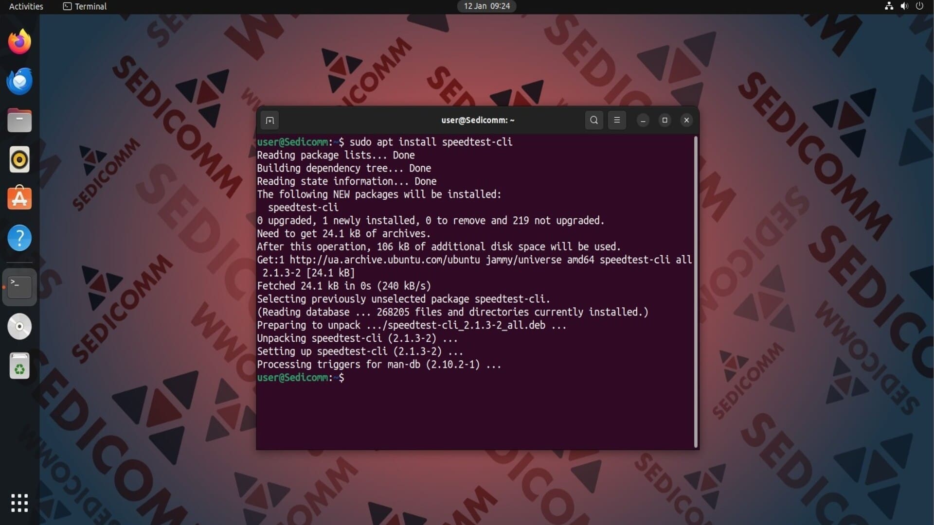 Вы можете установить инструмент speedtest-cli с помощью стандартных менеджеров пакетов Вашего дистрибутива Linux. Для этого выполните одну из следующих команд.