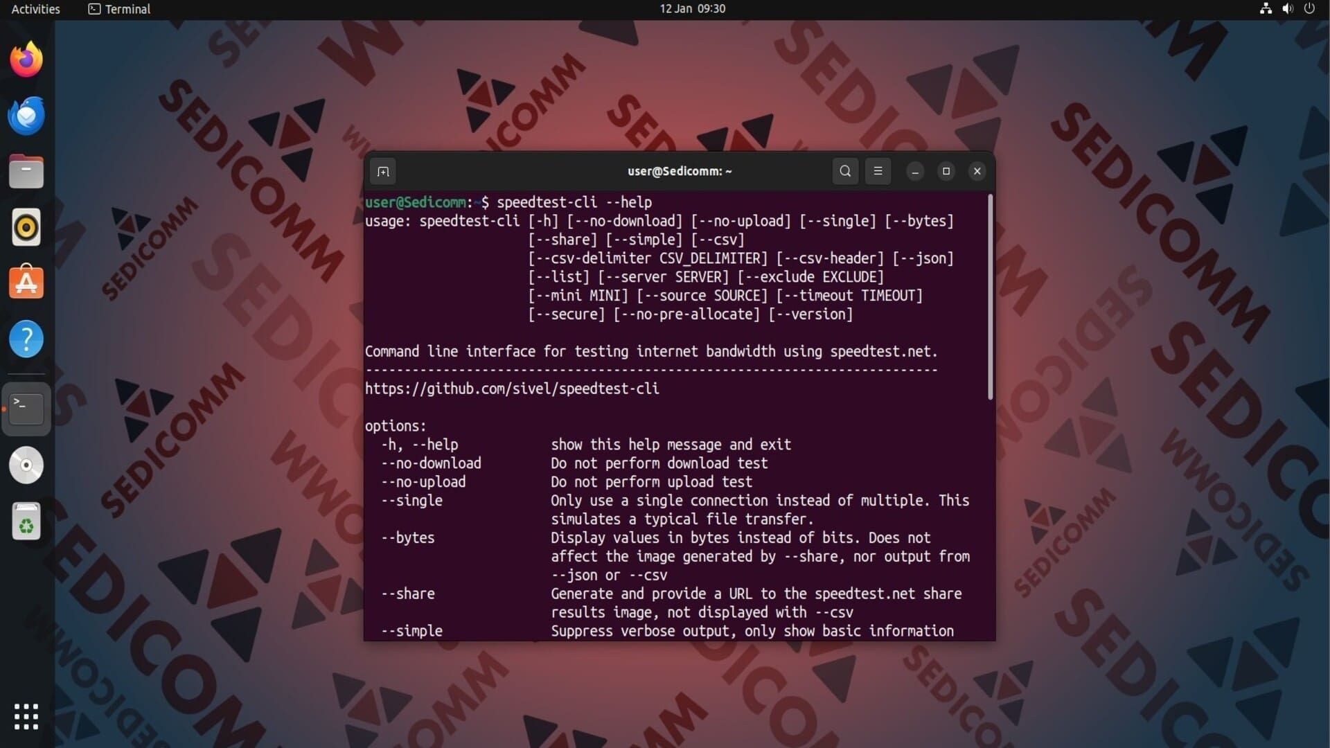 Чтобы просмотреть все опции speedtest-cli, выполните в терминале: