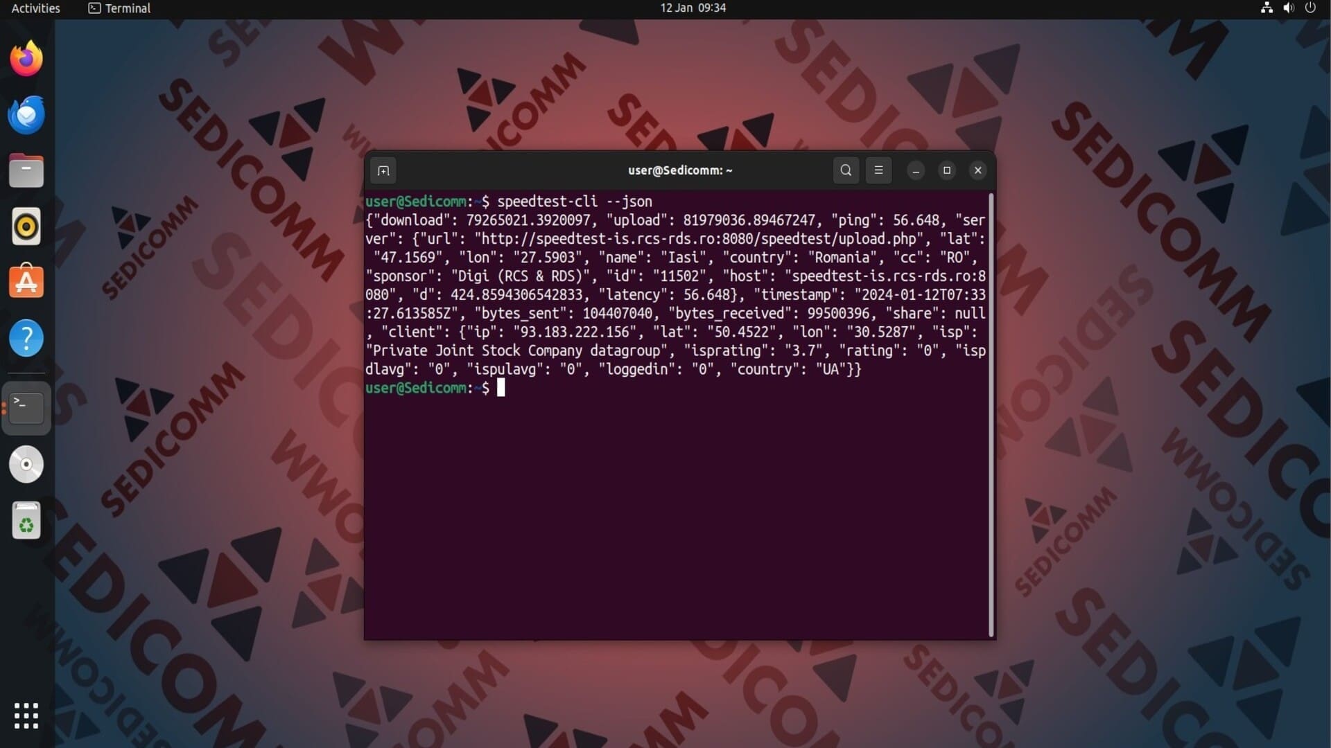 Чтобы вывести результаты тестирования скорости интернет-соединения в формате JSON, используйте команду speedtest-cli с опцией --json: