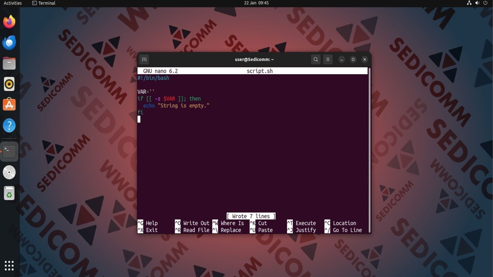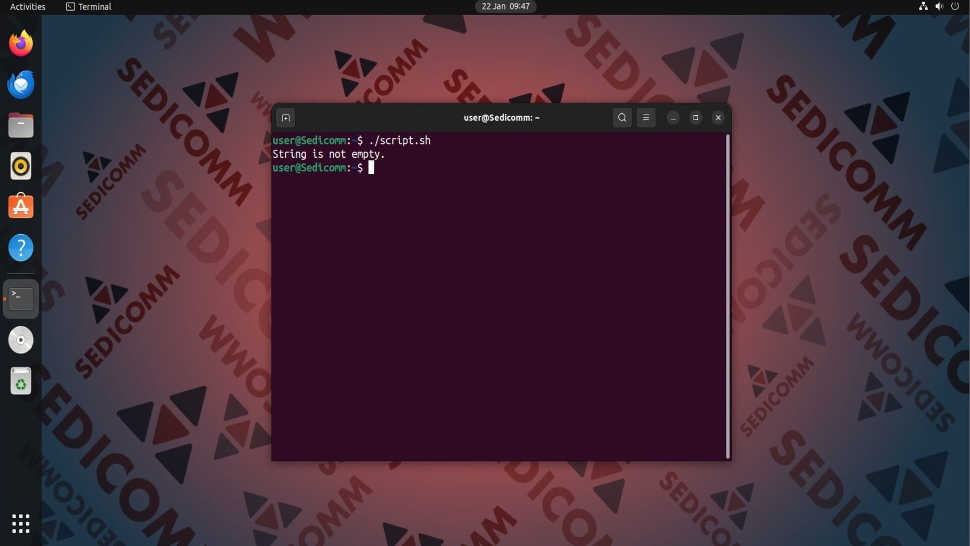 В Linux есть два оператора, которые позволяют проверить, пуста ли строка, — -n (возвращает True, если длина строки ненулевая) и -z (возвращает True, если длина строки равна нулю). Например: