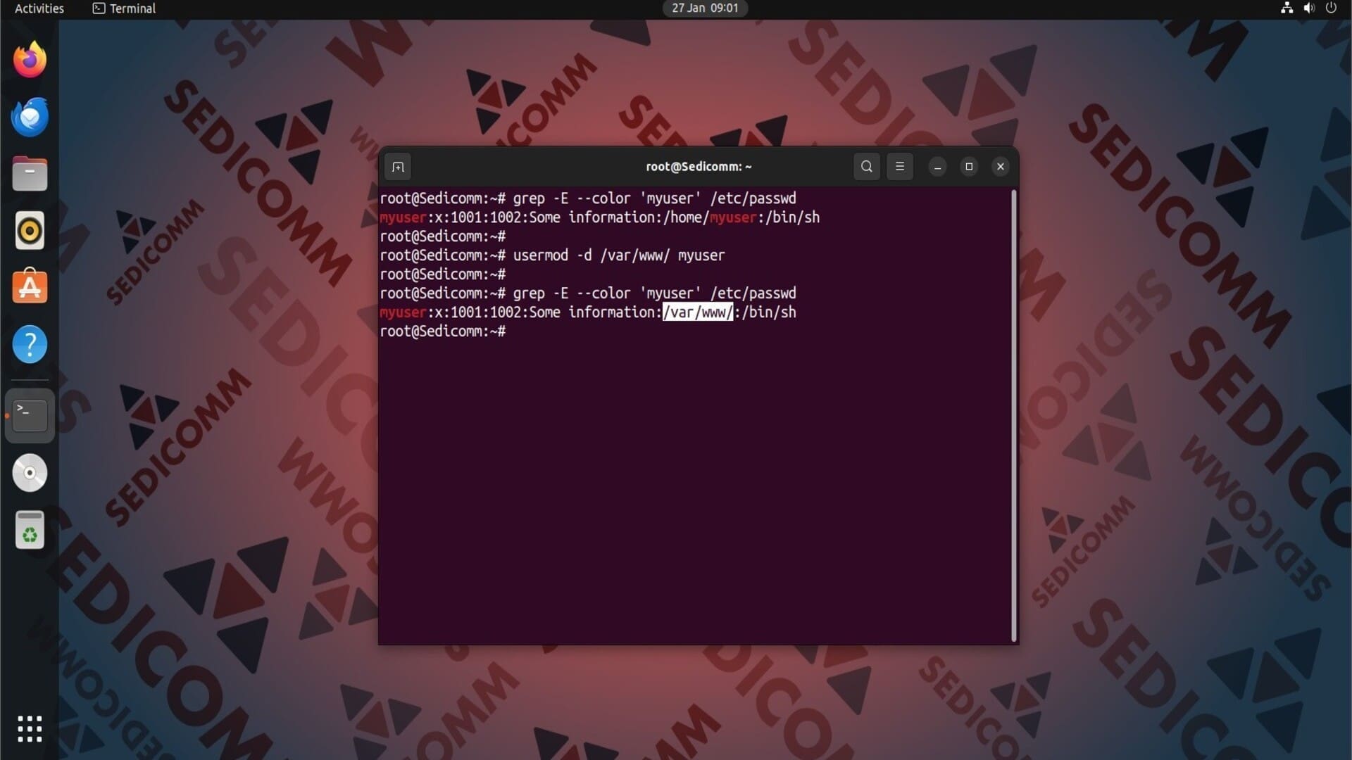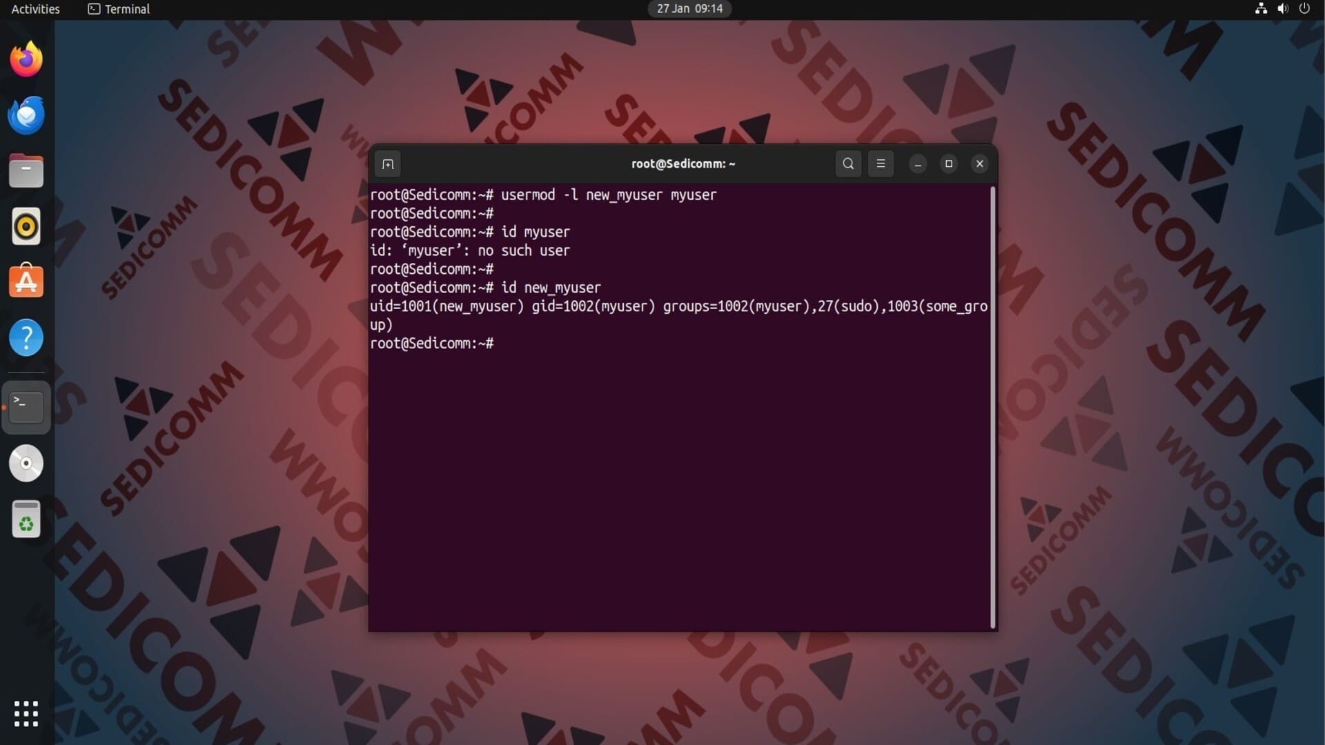 Утилита usermod — инструмент командной строки Linux, который позволяет изменять свойства / атрибуты учетных записей пользователей. С помощью этой команды Вы можете добавлять / удалять пользователей из групп, изменять оболочку входа пользователя в ОС, устанавливать новые имена пользователей и их идентификаторы, и многое другое.