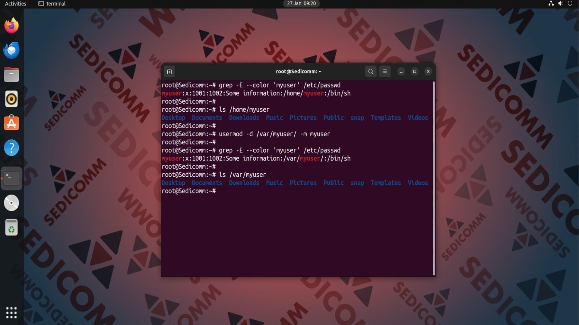 - Изменение домашнего каталога пользователя