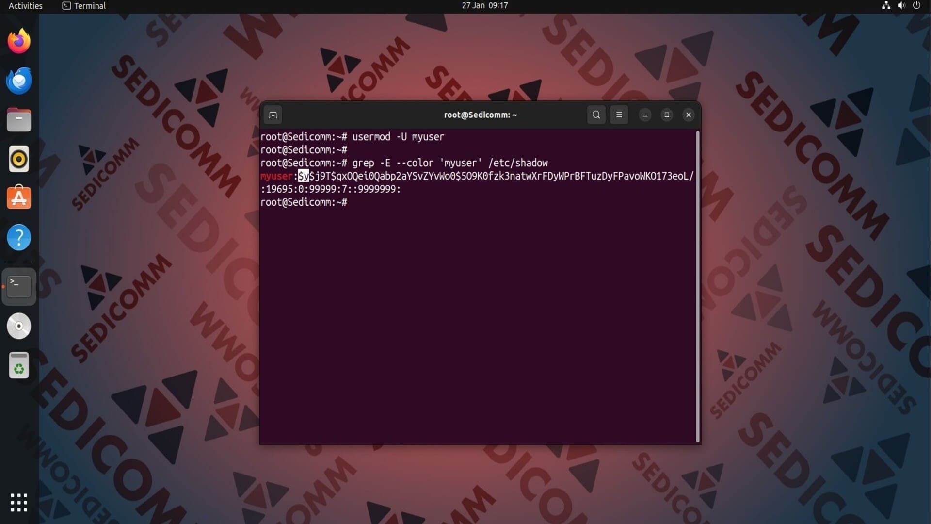 Важно: как видно на скриншоте выше, создавая пароль таким способом, Вы сохраните его в незашифрованном виде в файле /etc/shadow. Поэтому, применяя эту команду, Вы должны иметь полную уверенность в том, что никто не получит доступ к этому файлу и не сможет подсмотреть Ваш пароль.