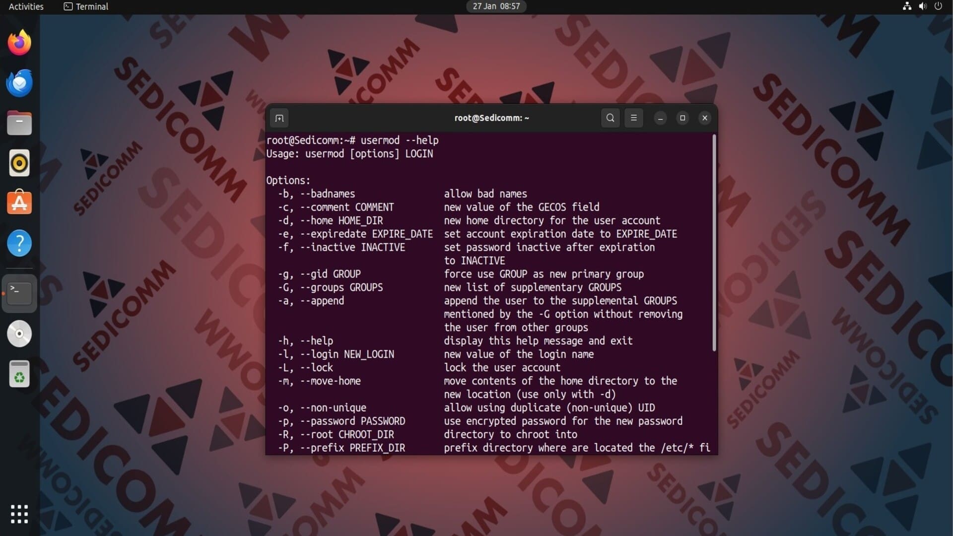 Чтобы вывести на экран список всех опций usermod, выполните в терминале: