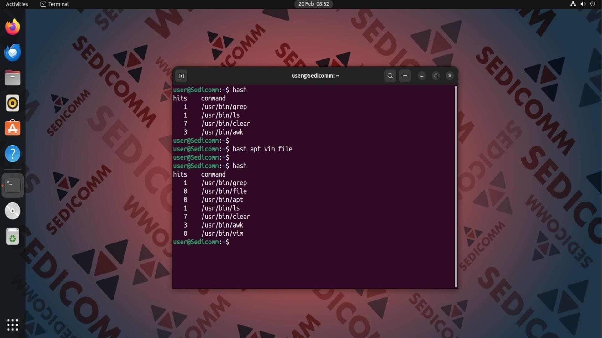 Тем не менее, при использовании различных команд в терминале, хеш-таблица будет постепенно наполняться обновленными данными.