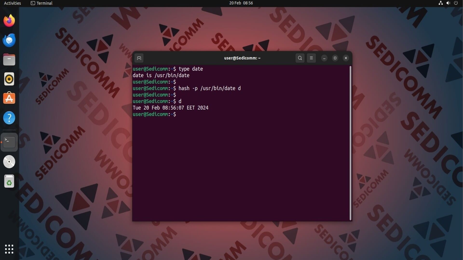 - Создайте псевдоним для команды с помощью hash