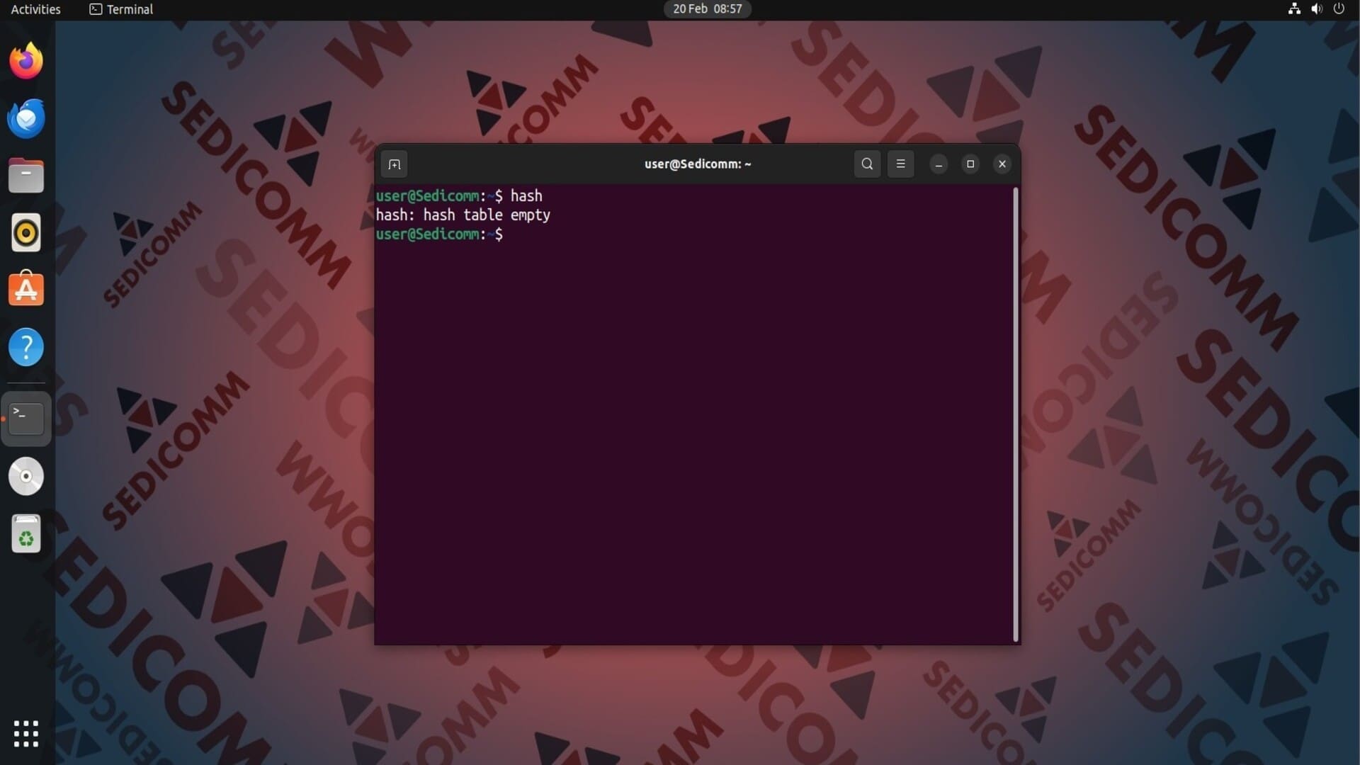 Сразу же после запуска терминала Linux хеш-таблица пуста. В этом можно убедиться, выполнив команду: