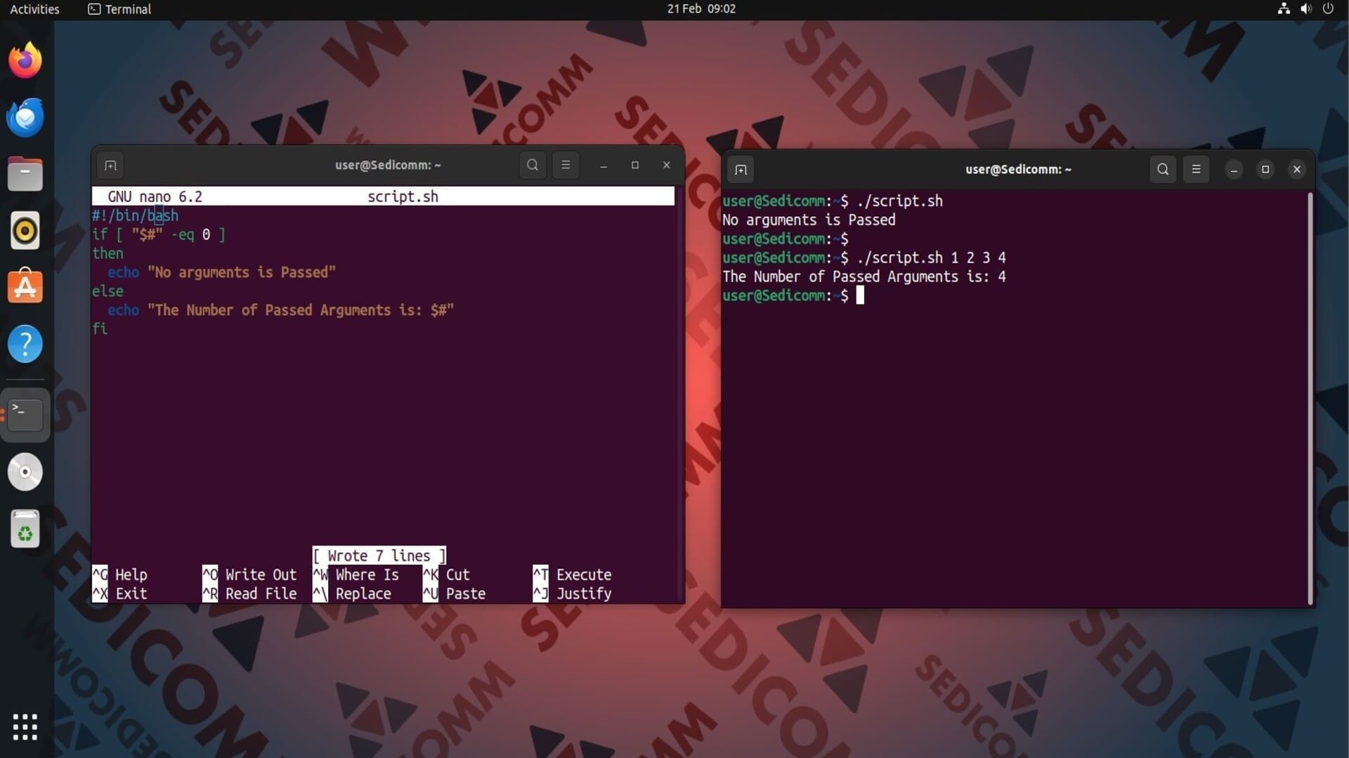 $#равняется нулю), скрипт печатаетNo arguments is Passed. - Если аргументы переданы, выводится количество аргументов.