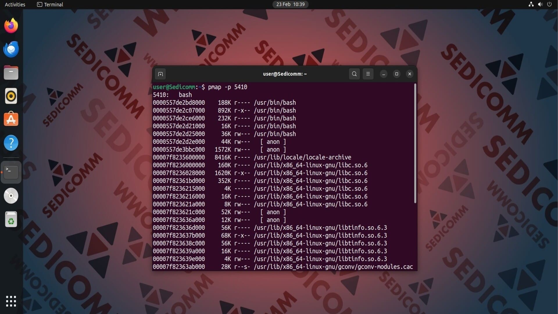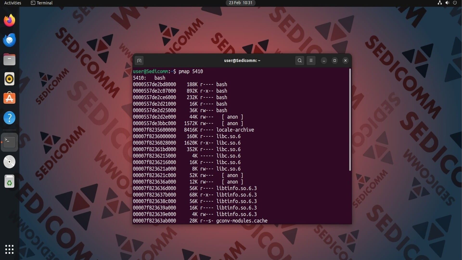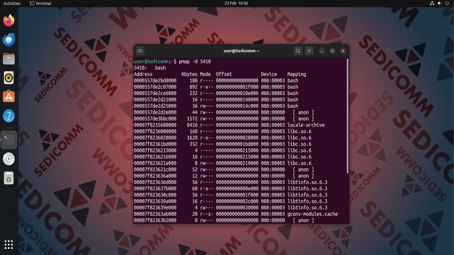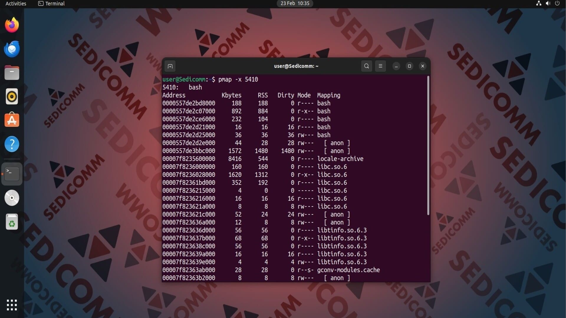 Допустим, нам нужно получить информацию о том, как оболочка Bash использует память. Для этого укажем идентификатор этого процесса (в нашем случае — это 5410) в качестве аргумента команды pmap: