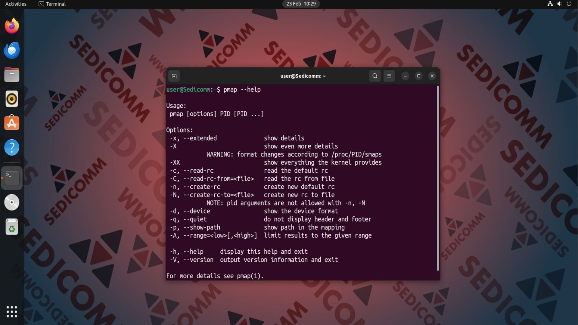 Чтобы вывести на экран список всех опций pmap, выполните в терминале: