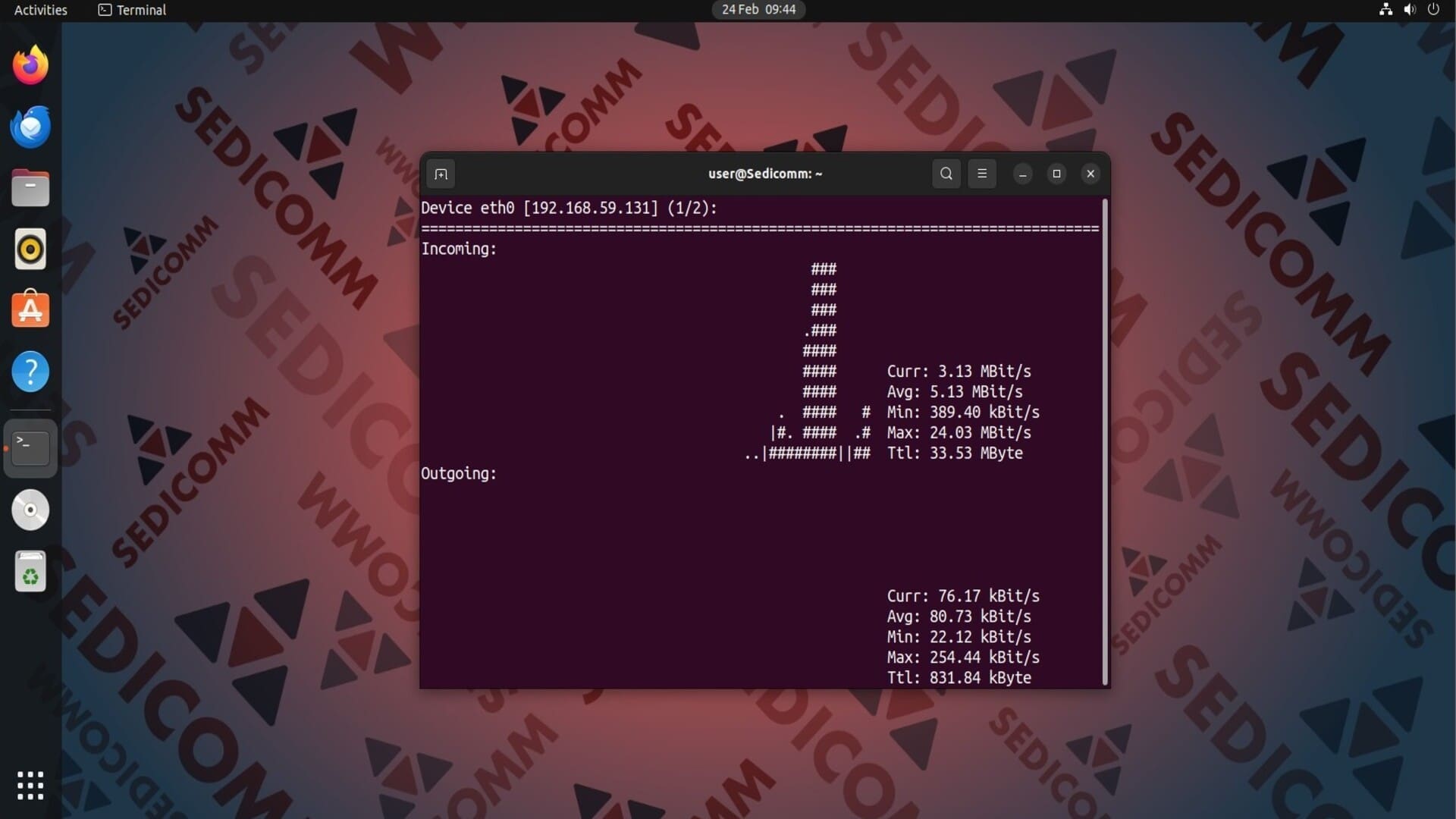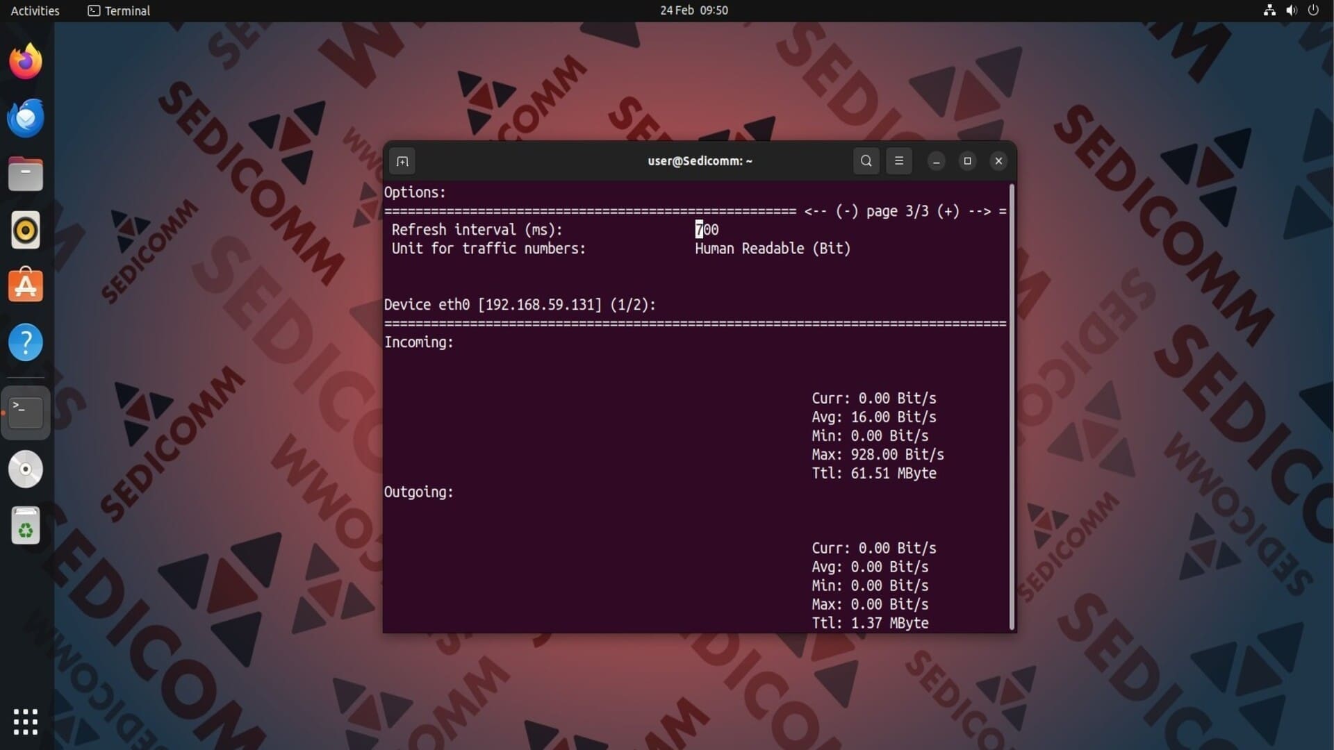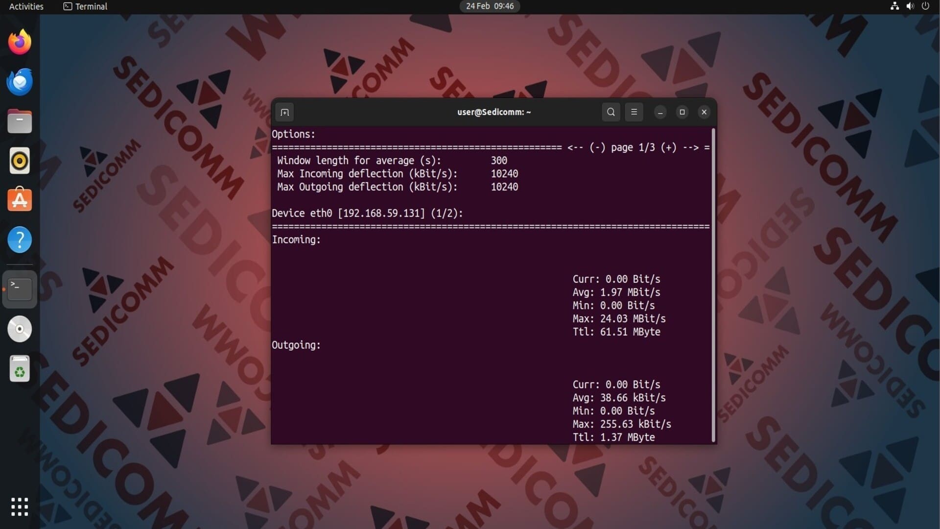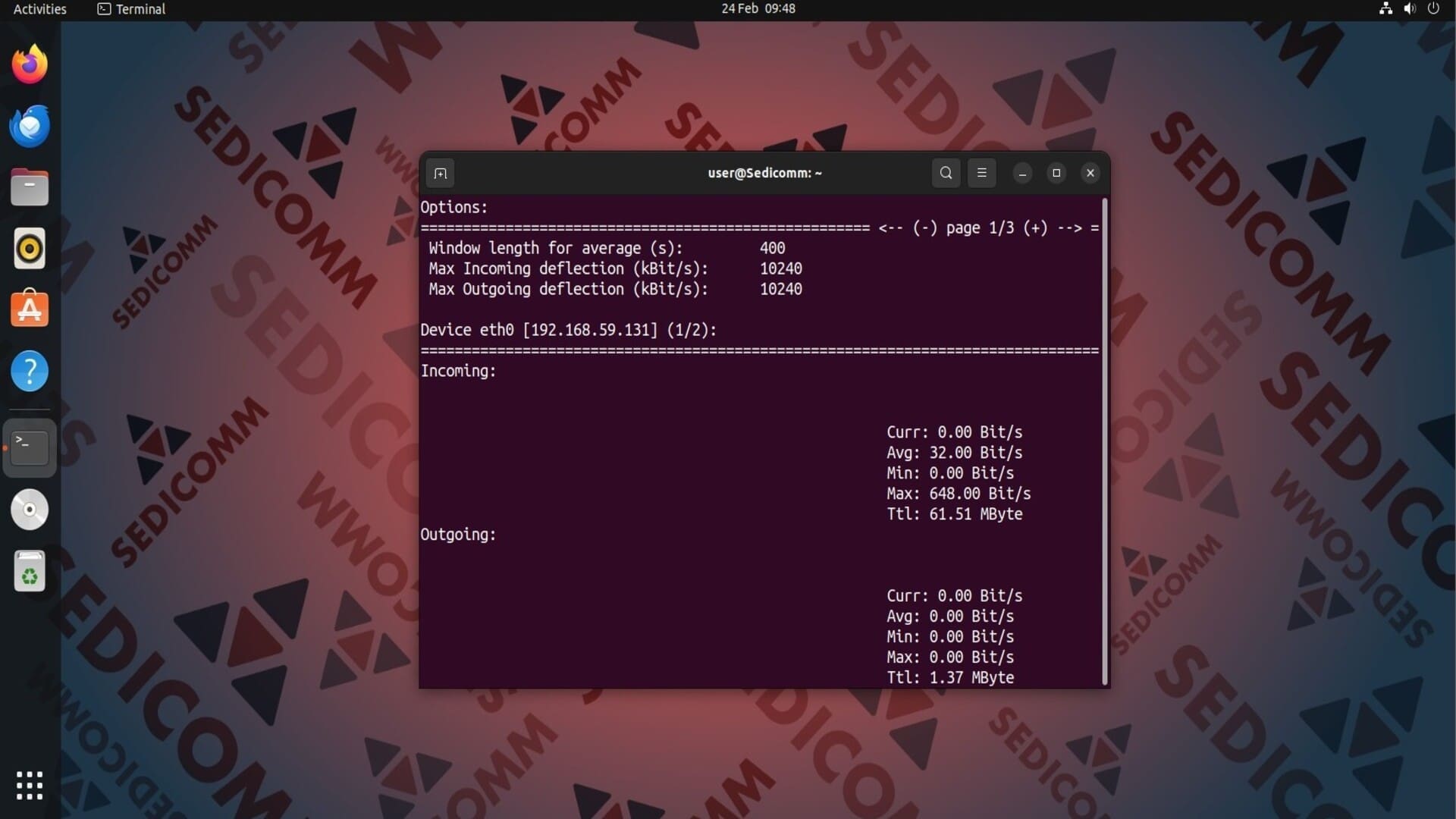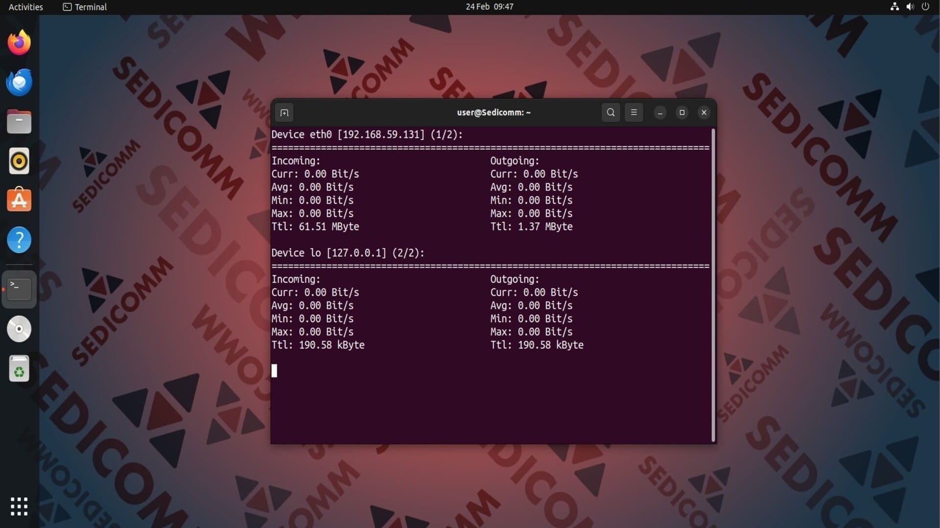 Эта утилита отображает статистику трафика отдельно по каждому сетевому интерфейсу. Чтобы вывести в терминал данные о нагрузке на сеть на другом интерфейсе, используйте клавиши «Влево» или «Вправо».
