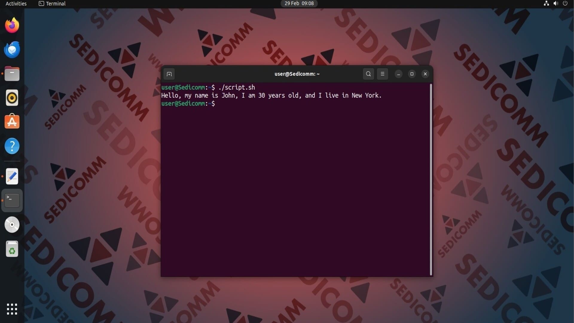 Здесь мы используем двойные скобки $((...)). Все, что находится внутри них, оболочка Bash рассматривает как арифметическое выражение, которое должно быть подсчитано. А команда echo выводит в терминал результат вычисления.