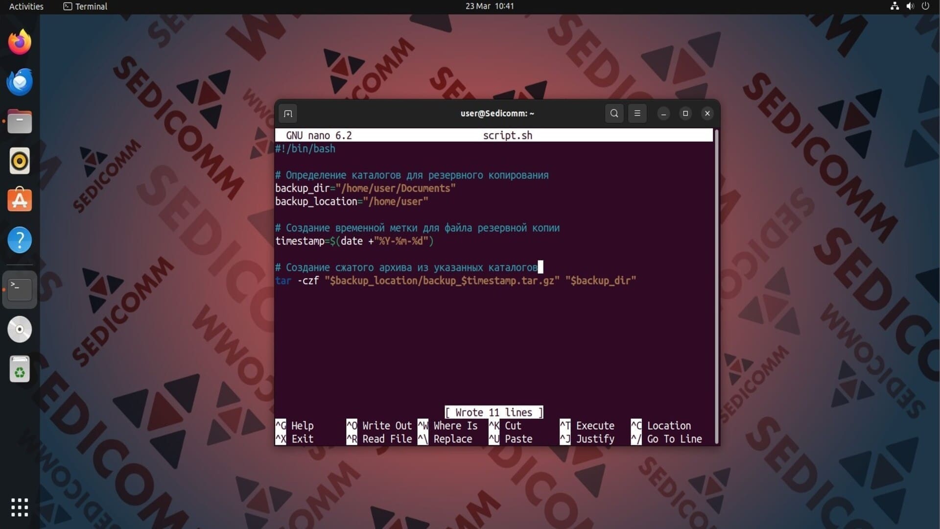 Давайте напишем скрипт, который создает архив с резервной копией данных из определенного каталога: