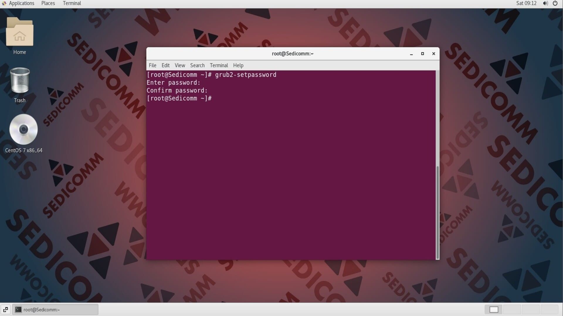 Первым делом Вам нужно авторизоваться в учетной записи суперпользователя root. По умолчанию в дистрибутиве CentOS Linux предустановлена утилита grub2-setpassword — инструмент командной строки, предназначенный для установки пароля для доступа к настройкам загрузчика GRUB. Выполните в терминале эту команду и напишите свой пароль: