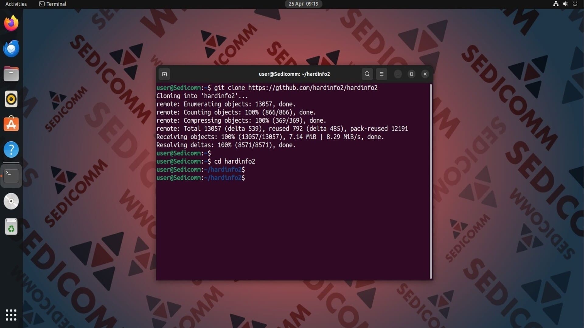 Чтобы установить инструмент Hardinfo2, для начала клонируйте официальный репозиторий приложения с помощью команды git clone и перейдите в папку hardinfo2: