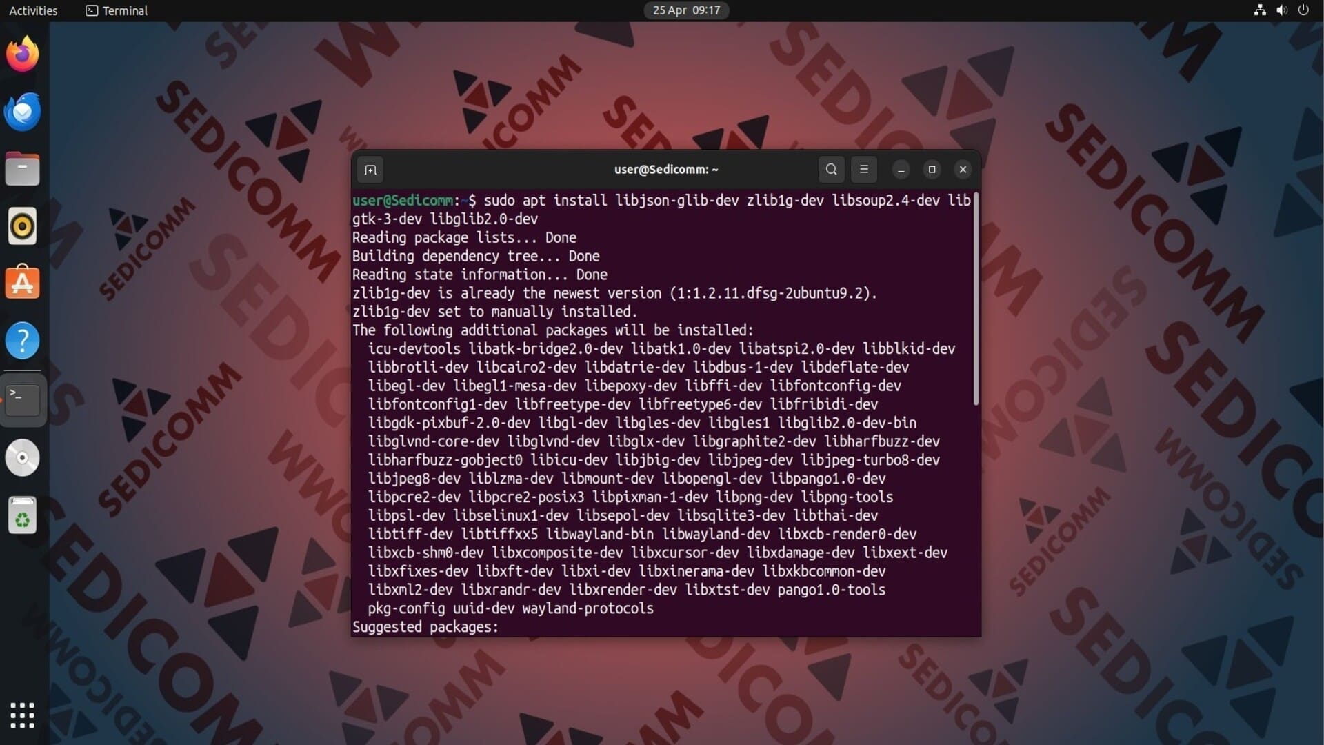 libjson-glib-dev— предоставляет зависимости для чтения и записи данных JSON в приложениях на базе GLib;zlib1g-dev— используется для сжатия данных;libsoup-3.0-dev— предоставляет высокоуровневый API для отправки HTTP-запросов и обработки ответов, упрощая разработку сетевых приложений;libgtk-3-dev— применяется для создания графических пользовательских интерфейсов;libglib2.0-dev— предоставляет типы и структуры данных и служебные функции для программирования на C.