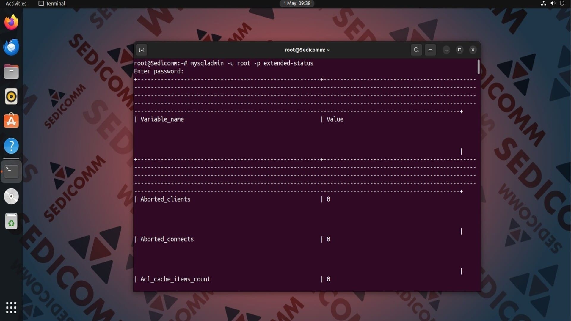 Переменные MySQL — параметры, которые управляют поведением и настройкой сервера MySQL. Изменяя их значения, можно влиять на различные аспекты работы сервера, включая производительность, безопасность и функциональность. Чтобы вывести в окно терминала таблицу переменных MySQL с их значениями, примените подкоманду extended-status:
