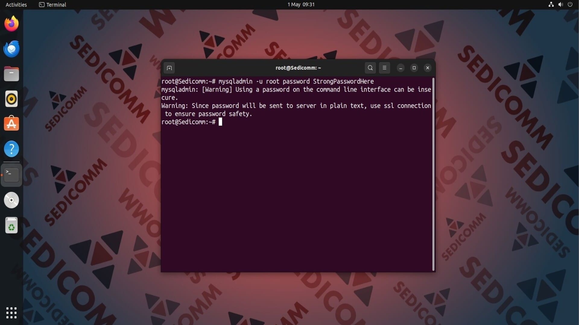 Такой способ установки пароля не считается надежным.  Утилита mysqladmin сообщает об этом и советует использовать дополнительные средства защиты сервера MySQL.