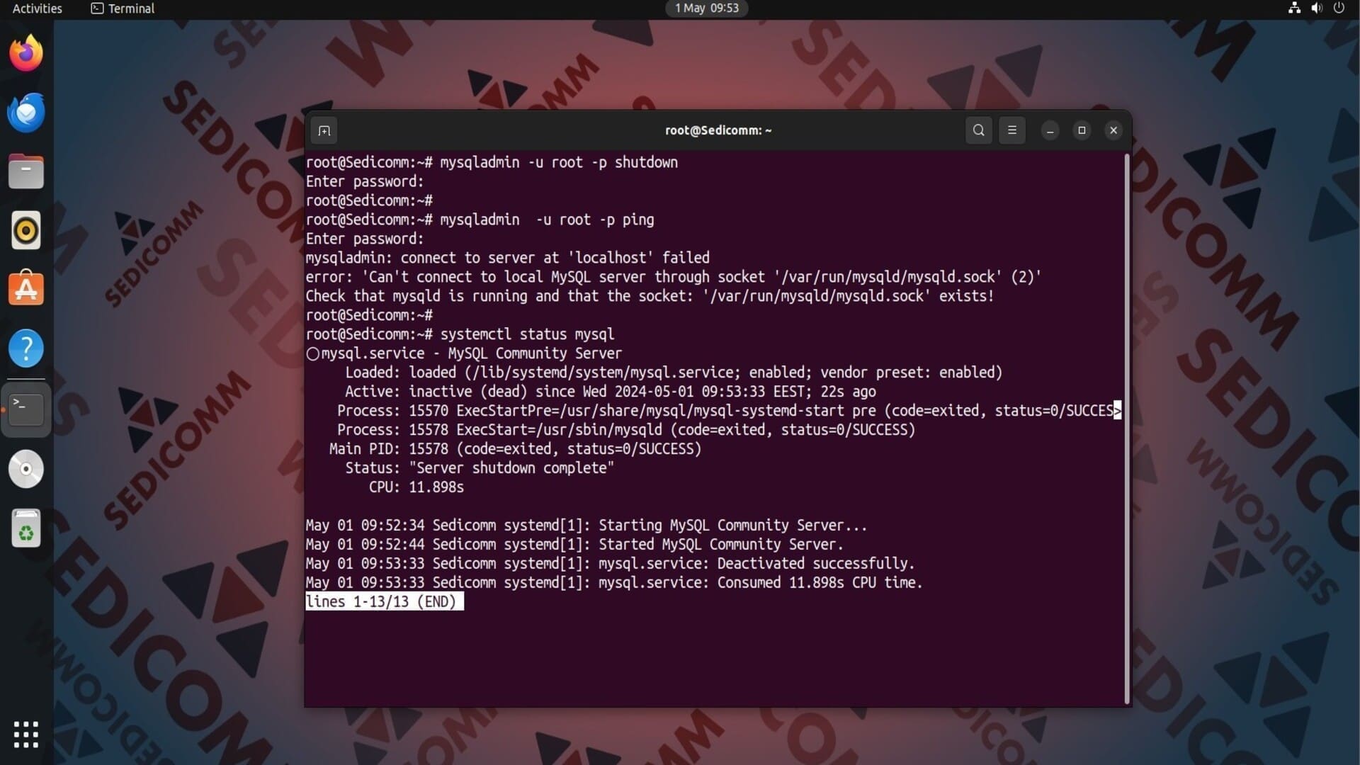Чтобы узнать, работает ли сервер MySQL, выполните следующую команду: