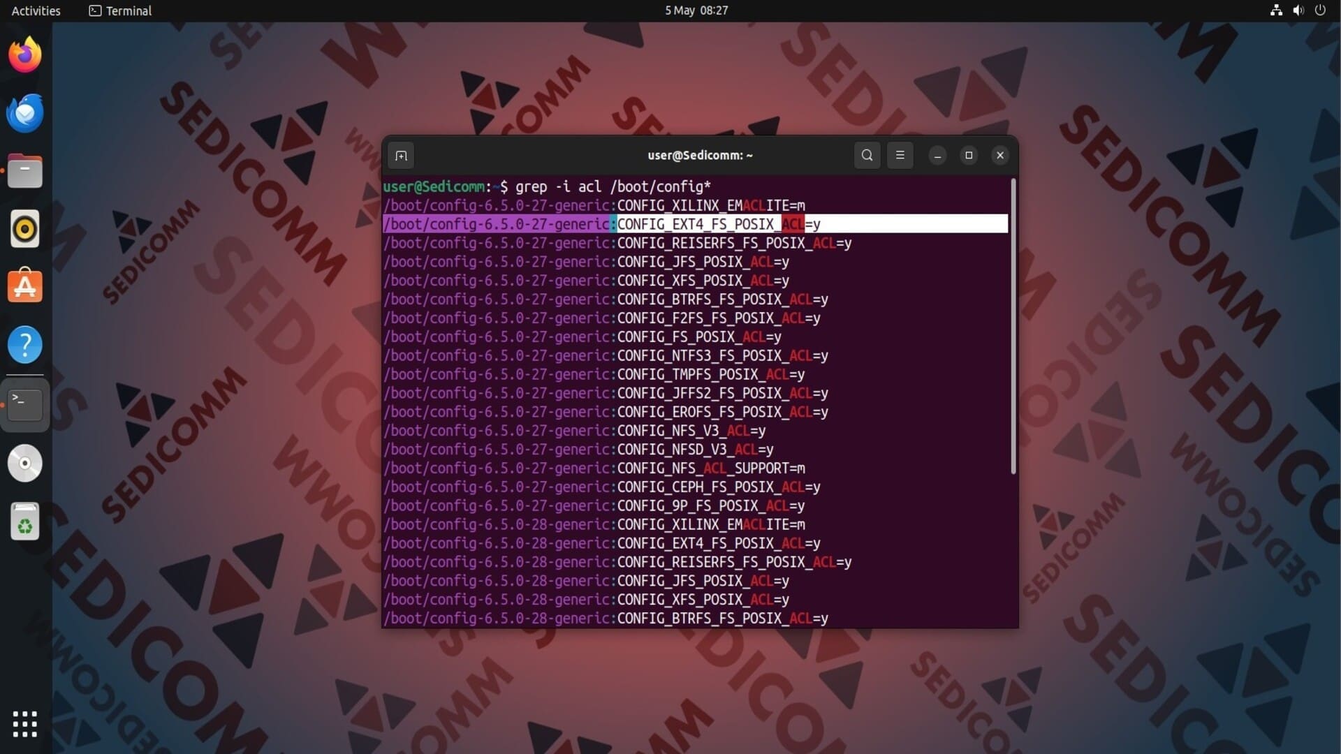 На скриншоте выше показано, что параметр CONFIG_EXT4_FS_POSIX_ACL имеет значение y. Значит функция ACL включена.