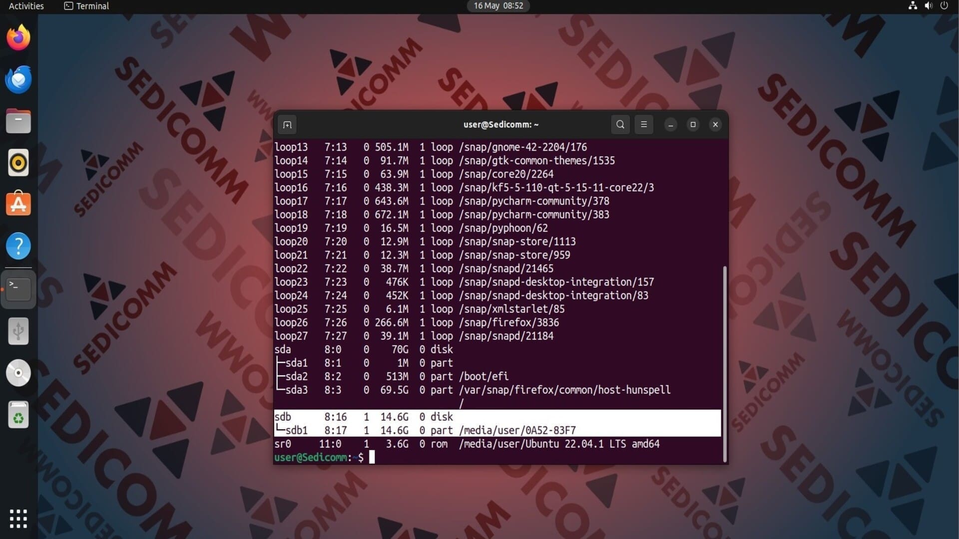 На скриншоте выше видно, что наша флешка имеет точку монтирования /media/user/0A52-83F7 и название sdb1. Поскольку все блочные устройства хранятся в каталоге /dev, то абсолютный путь к USB-накопителю будет — /dev/sdb1.