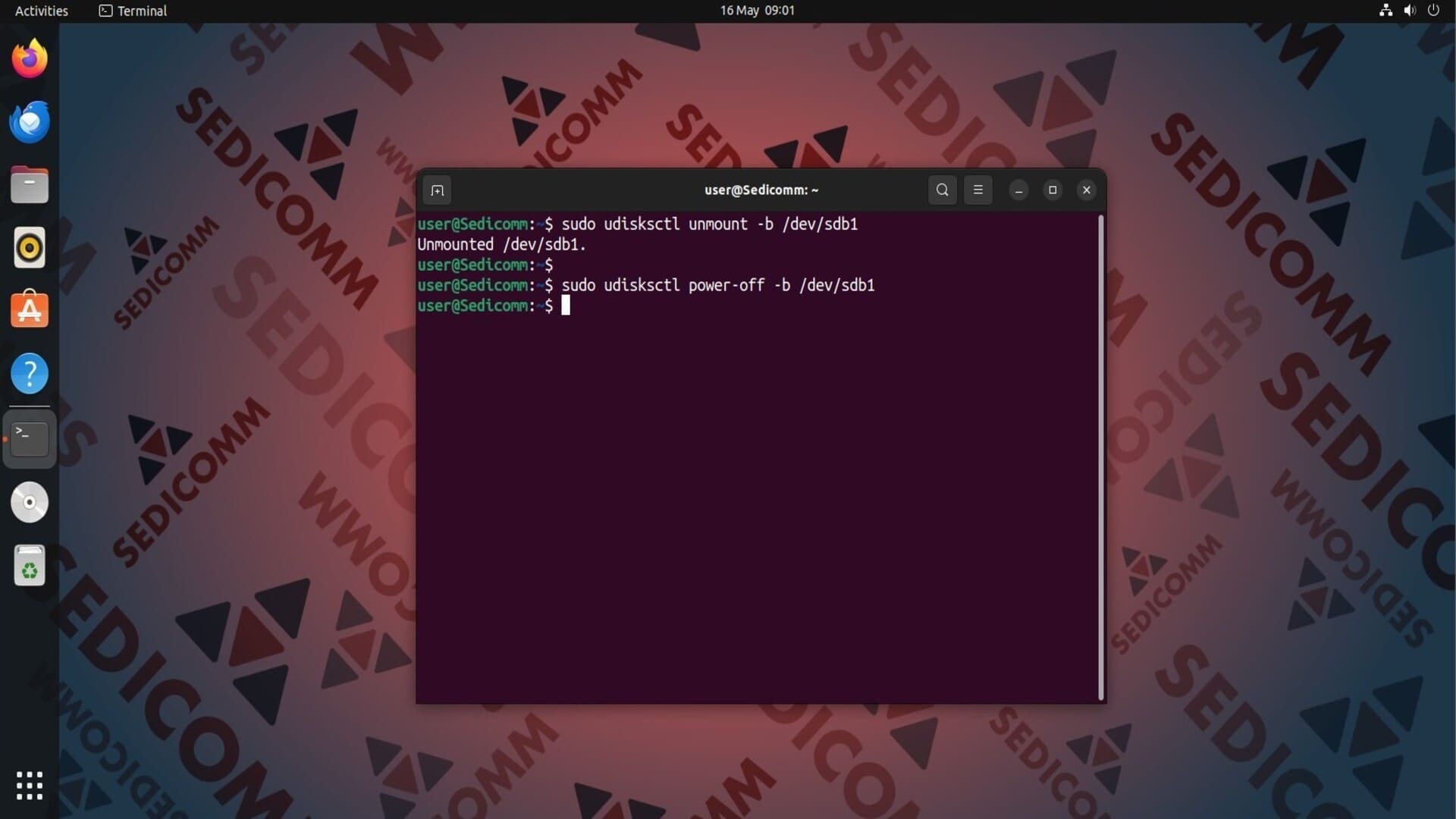 - Безопасное извлечение USB-накопителя с помощью udisksctl