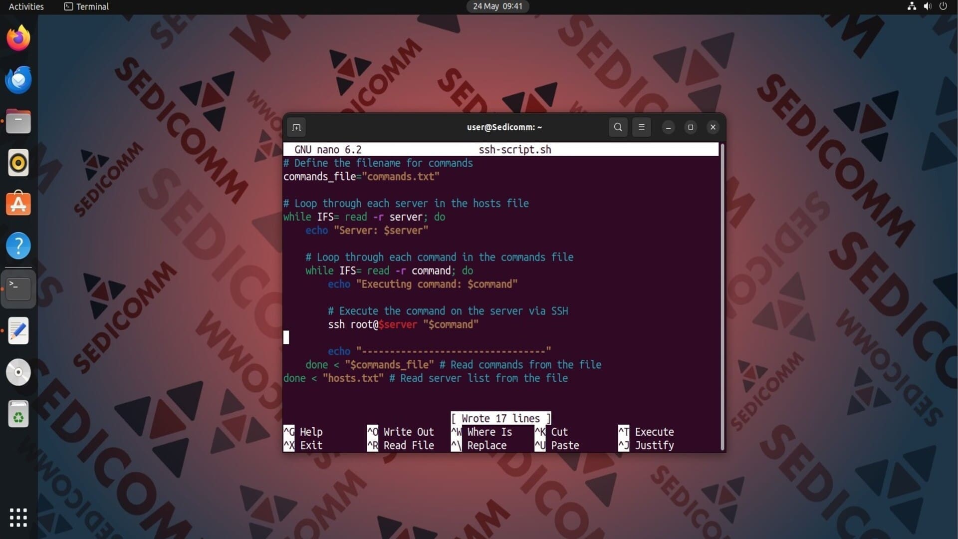 Далее Вам нужно использовать следующий скрипт Bash, чтобы считать команды из файла и запустить их на удаленных серверах:
