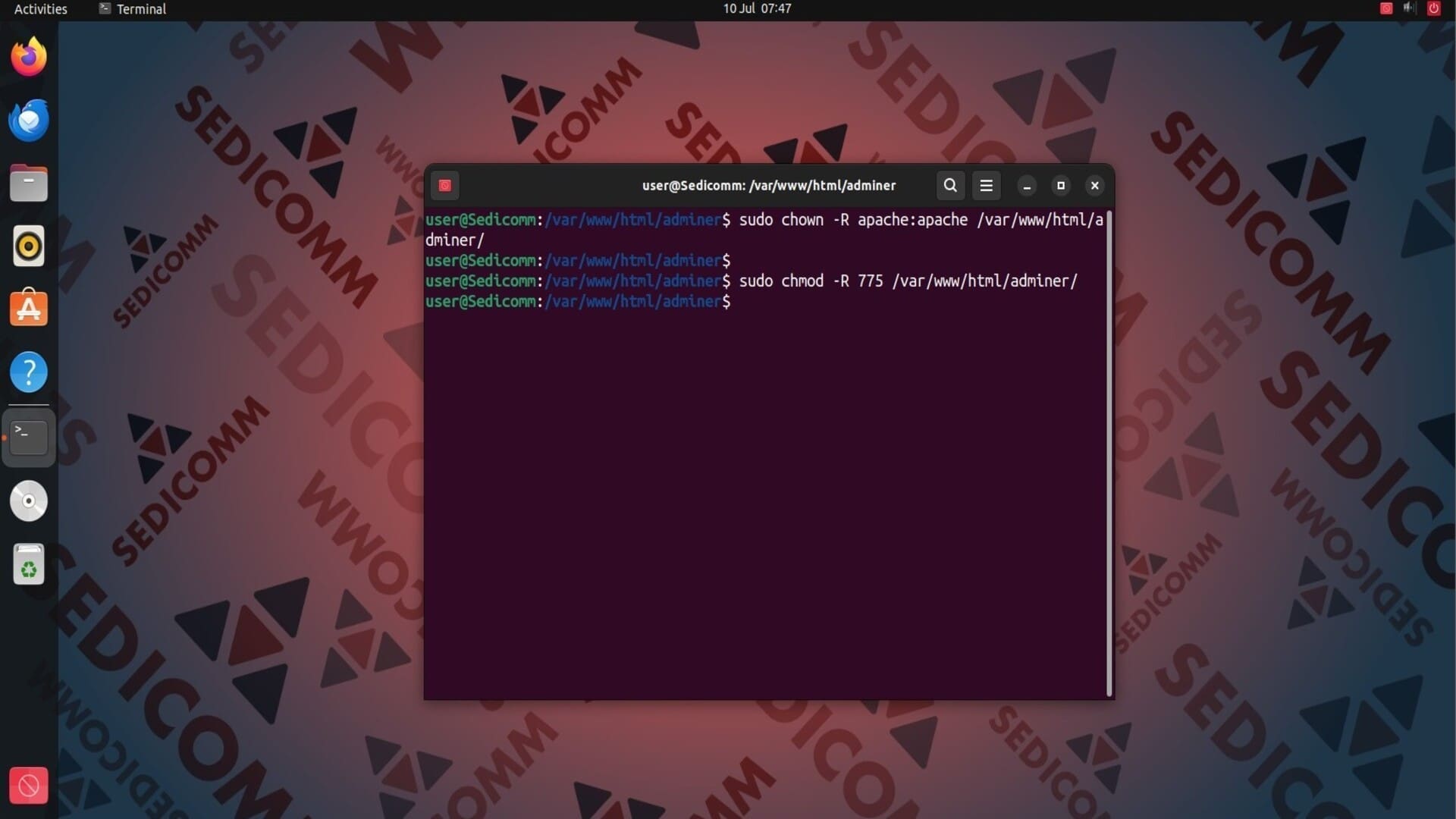 Поскольку Adminer будет работать на Apache, создайте каталог для этого ПО в корневой директории веб-сервера: