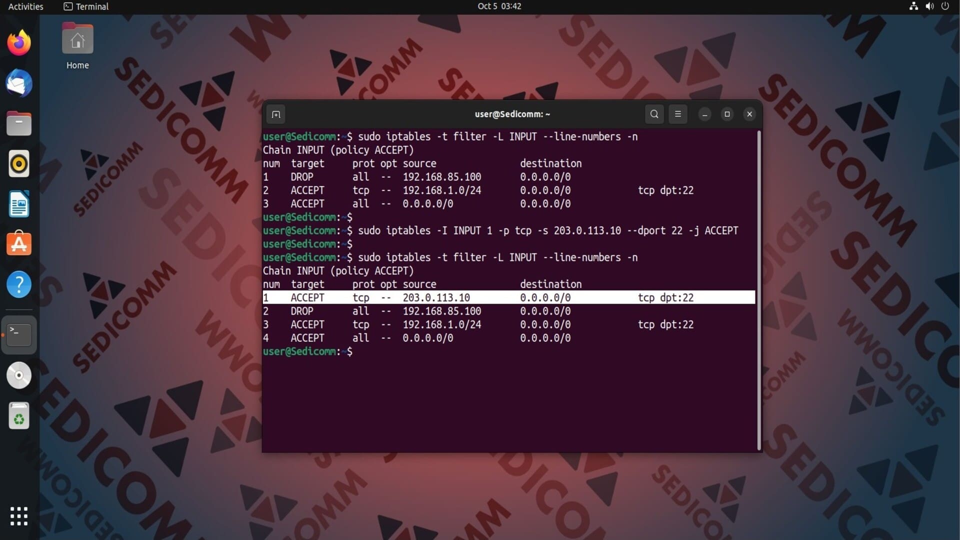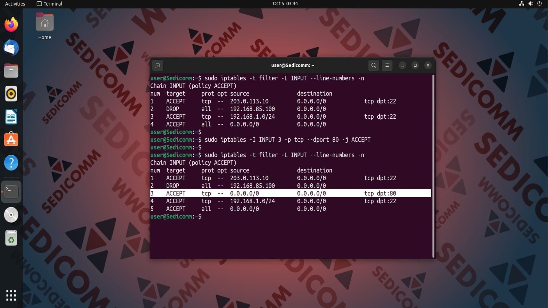 Таким же образом можно добавить правило iptables на третью позицию в цепочке. К примеру: