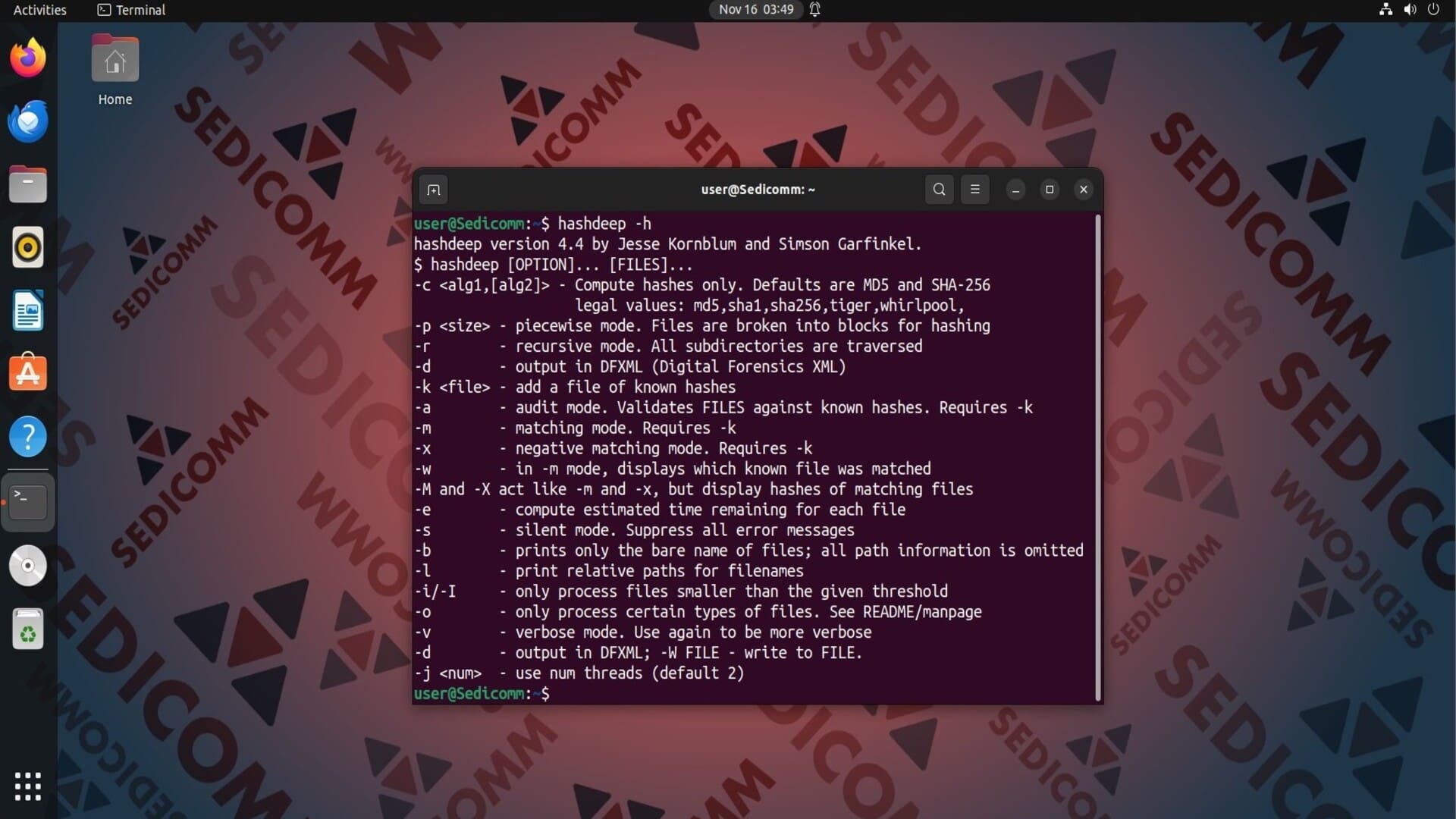 Чтобы ознакомиться со всеми опциями команды hashdeep, выполните в терминале: