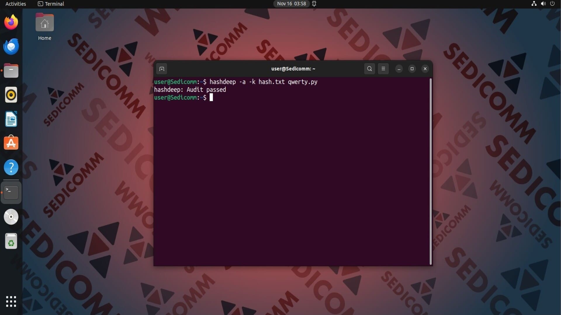 Теперь Вы знаете, как установить инструмент hashdeep в операционной системе Linux. Также мы показали несколько практических примеров использования этой утилиты для вычисления хэша файла и проверки целостности данных.