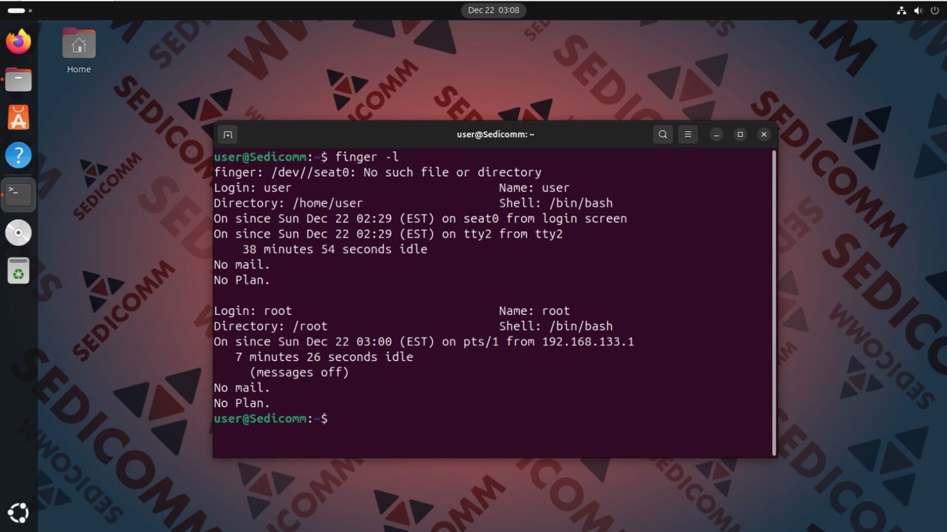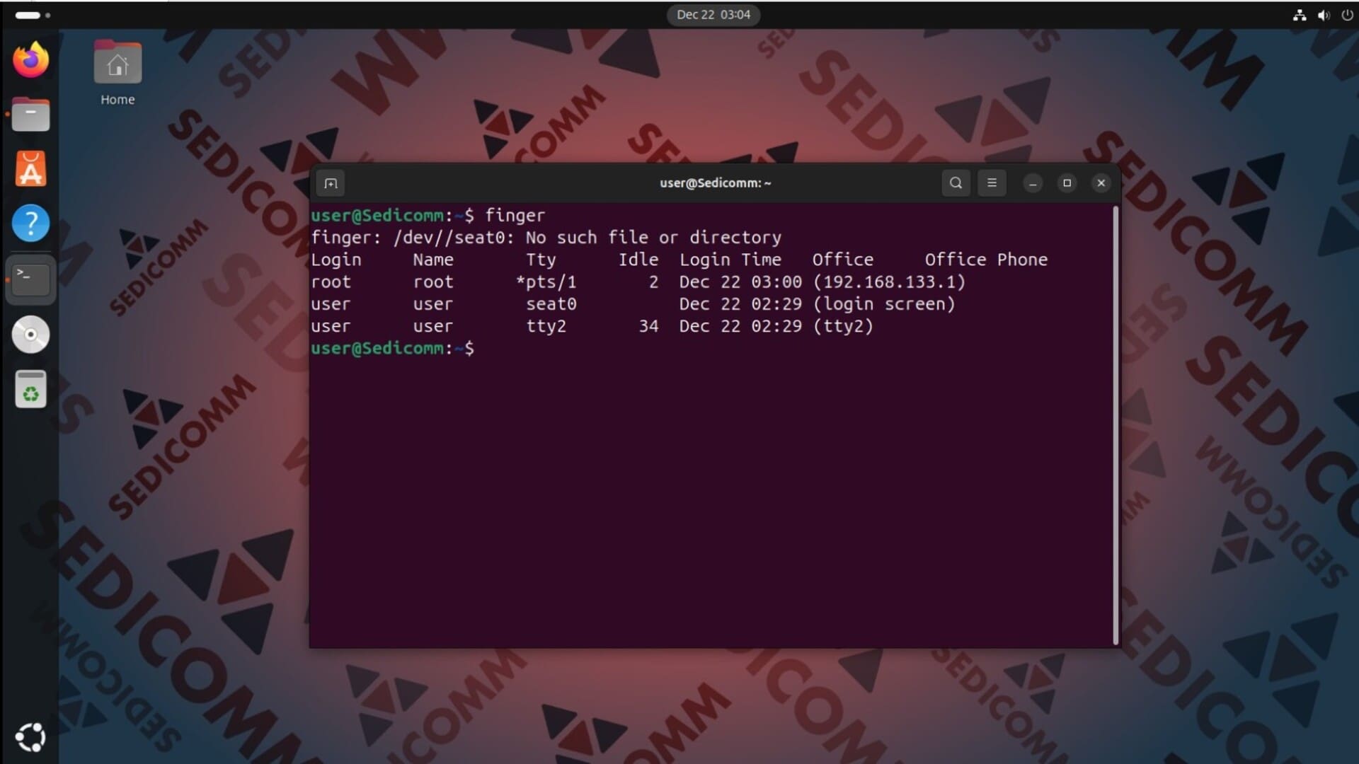 Вы можете установить инструмент finger с помощью стандартных репозиториев Вашего дистрибутива Linux. Например, чтобы это сделать в Ubuntu, используйте следующую команду: